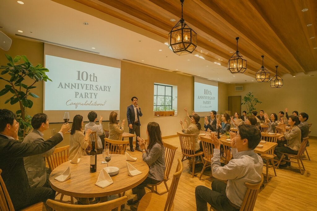 懐かしい友人同士の集いや、周年を記念したお祝いに。マイク、音響機材、プロジェクター完備。進行もサポートいたしますので、お気軽にご相談ください。