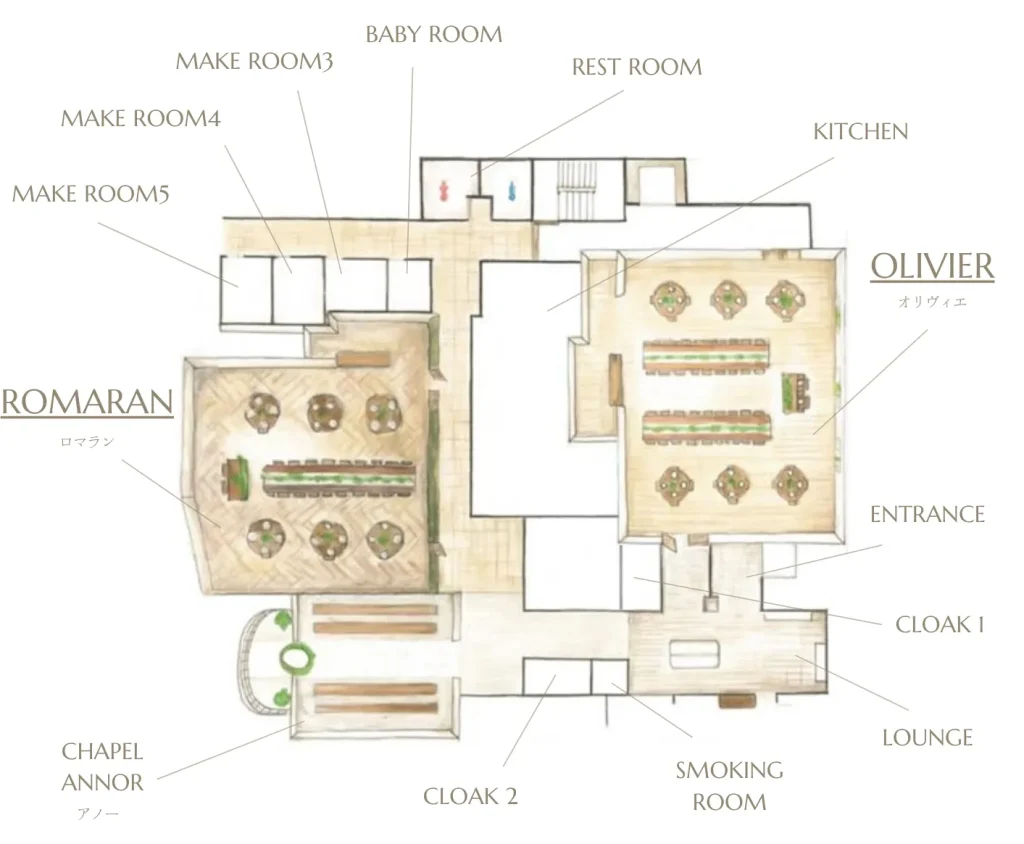 ラシック アンジュールで、各種宴会・イベント・展示会が叶います。ナチュラルテイストな会場で、思い思いの時間をお過ごしください。